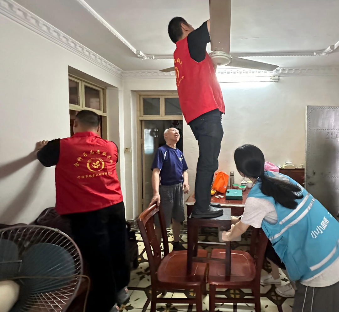 近日,公司黨總支“金種子”志愿服務(wù)隊針對黨建共建單位寧舟社區(qū)的86位獨居老人,組織公司董浩、萬國良等多名志愿者開展“夏耘”主題“清涼來敲門”志愿服務(wù)行動。志愿者們走進一戶戶獨居老人家中,查線路、修電器、換燈泡,為老人們送上一份份“清涼”。